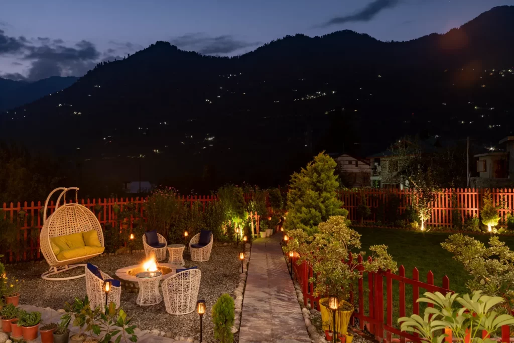 Vasti, which is surrounded by apple orchards, is roughly 11 miles from Manali’s Mall Road. Sinha desired an area that provided a way to get away from the throng without being too distant from Manali. With its lush surroundings of undulating meadows and trees and a view of the Dhauladhar and Pir Panjal ranges, Bathar hamlet made the cut.