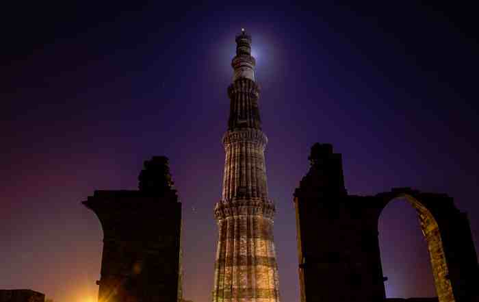The Qutub Minar is a towering 73 meter high tower built by Qutub-ud-Din Aibak in 1193. The tower was built to celebrate Muslim dominance in Delhi after the defeat of Delhi’s last Hindu ruler. This tower is the highest tower in India, complete with five storeys and projecting balconies.