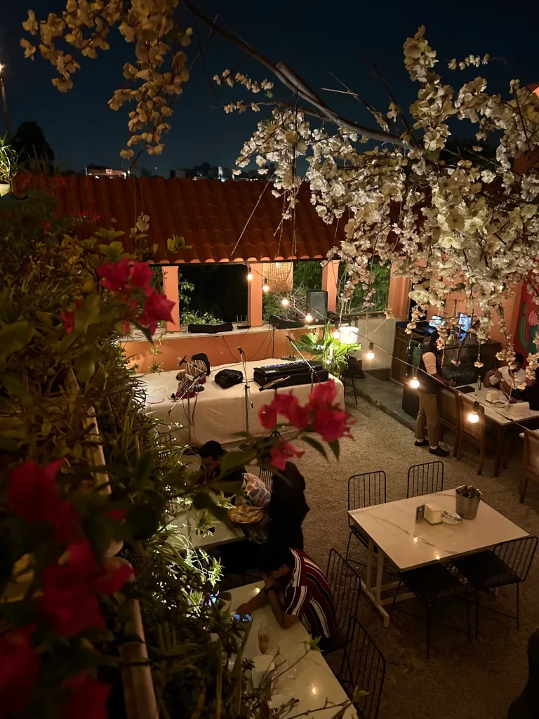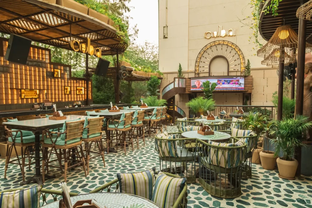 Café 27 in Kailash Colony offers a blend of café culture and rooftop ambiance. With two rooftop bars and an area dedicated to live performances, it’s a popular spot for private parties. Enjoy Qawwali and Sufi nights along with dishes like Butter Chicken Tacos and Mutton Pizza.